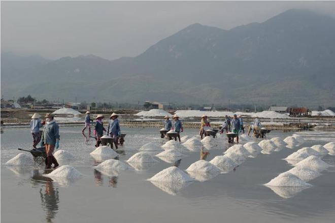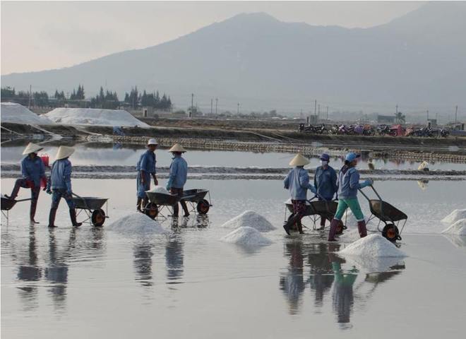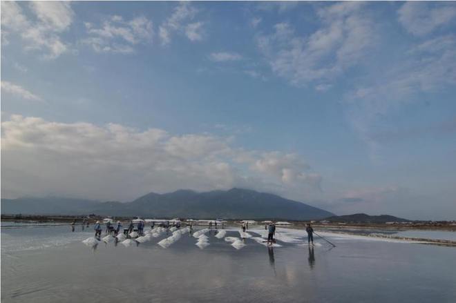 (VOVworld) - Terletak jauhnya kira-kira 45 Km dari kota Nha Trang (Vietnam Tengah), Hon Khoi adalah tempat yang ada ladang garam paling besar di Vietnam Tengah. Musim panas saban tahun merupakan saat-saat yang paling ideal bagi para petani di sini menghasilkan garam dan mendistribusikannya ke seluruh negeri. Dan pagi hari adalah saat yang paling cocok bagi para petani untuk mengambil garamnya karena pada saat ini, terik matahari masih belum terlalu panas.