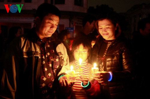 (VOVworld) – Pada pukul 20.30 WIB Sabtu malam 31 Maret, kampanye "Jam Bumi" dengan pesan “Saya dan Anda bersama-samalah bertindak” untuk berseru kepada semua instansi, badan usaha, organisasi dan rakyat supaya bertindak untuk melawan perubahan iklim global. Peristiwa Jam Bumi tahun ini disambut oleh kira-kira 150 negara di dunia. Untuk menyambut peristiwa ini, ibukota Hanoi juga telah memadamkan lampu selama satu jam.