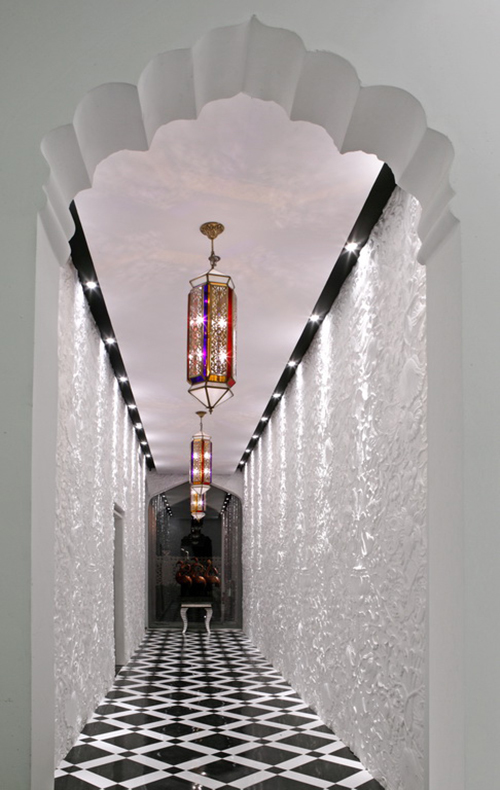 Ruang di dalam dihiasi dengan dua warna pokok ialah hitam dan putih, menciptakan karakteristik sendiri, tapi tidak kalah mewahnya