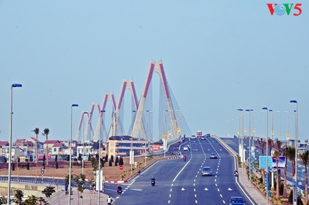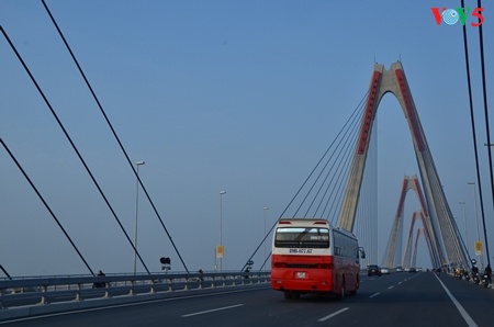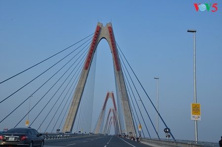 Sekarang, wisatawan yang datang ke ibukota Hanoi dari bandara akan lebih cepat karenamobil berjalan dengan kecepatan 80 km per jam lewat jembatan ini