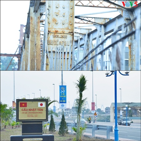 Jembatan Long bien dibangun pada masa perang dan jembatan Nhat Tan dibangun pada masa damai.