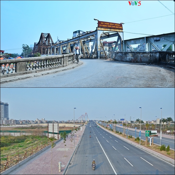 Marilah anda sekalian bersama dengan wartawan VOV5 memperlihatkan bagaimana perbedaan antara dua jembatan ini yang menunjukkan perkembangan yang pesat di Ibukota Hanoi.