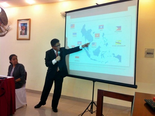 | Pak Dubes melakukan presentasi tentang hubungan antara Indonesia dan Vietnam |