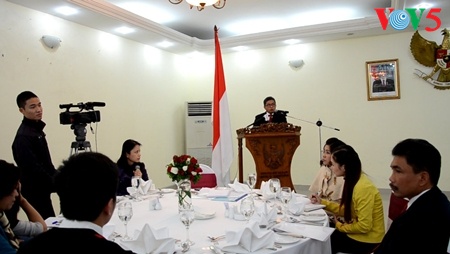 (VOVworld) – Pada Selasa pagi (16 Desember) di kota Hanoi berlangsung jumpa pers “Media Informal Gathering” yang diselenggarakan Kedutaan Besar Indonesia di Vietnam. Aktivitas tahunan ini bertujuan memberitahukan semua prestasi yang dicapai dua negara Indonesia dan Vietnam pada tahun 2014. Dalam pidato-nya di depan media massa, Dubes Mayerfas mengatakan bahwa Vietnam adalah negara satu-satunya dalam ASEAN yang mempunyai Hubungan Kemitraan Strategis dengan Indonesia.