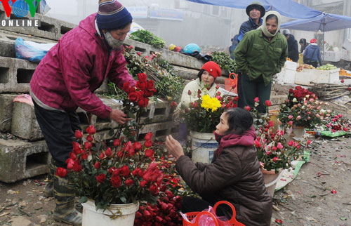 Bunga mawar tetap bermekar di pasar walaupun cuaca sangat dingin