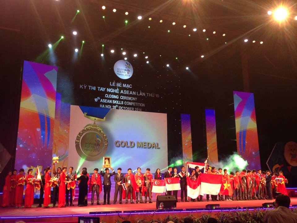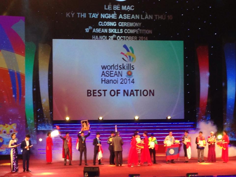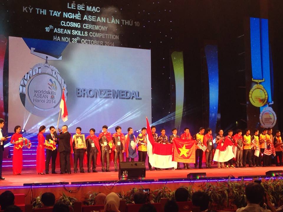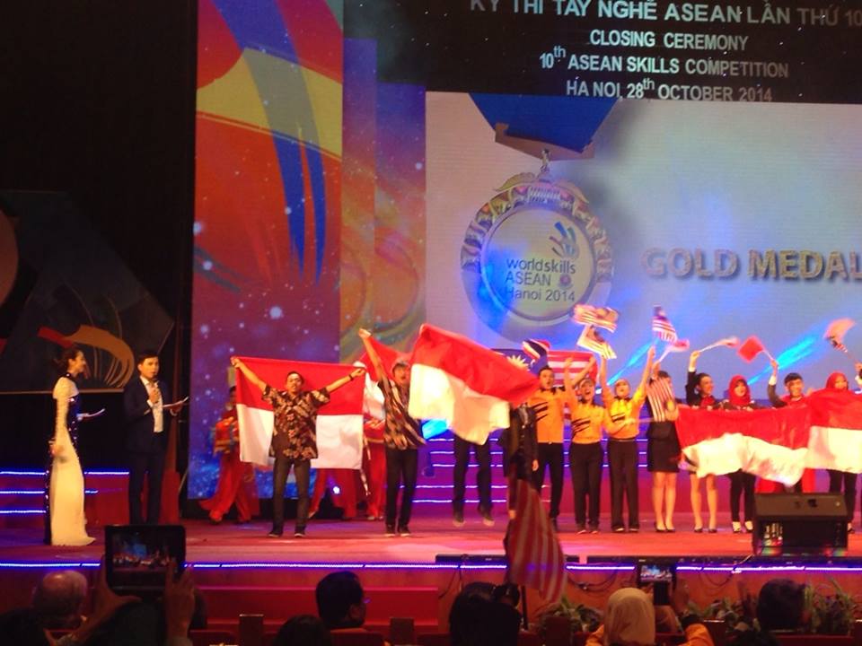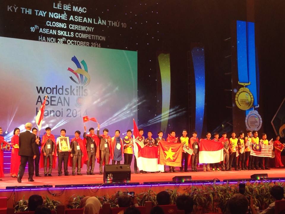 (VOVworld) - Kompetisi ke-10 Ketrampilan Kerja ASEAN-tahun 2014 yang berlangsung dari 19 sampai 29 Oktober telah berakhir. Kompetisi ini telah meninggalkan kesan yang baik akan solidaritas dan persahabatan antara sesama anggota ASEAN. Ini juga merupakan peluang bagi para pemuda semua negara ASEAN untuk dapat mencaritahu dan saling belajar pengalaman dalam berbagai isi kompetisi kali ini. Hasilnya negara tuan rumah Vietnam menjadi juara pertama dengan 15 medali emas. Sedangkan Indonesia menggodoli 9 medali emas kali ini. Mari kita melihat beberapa foto pada acara pemberian penghargaan Kompetisi ini.