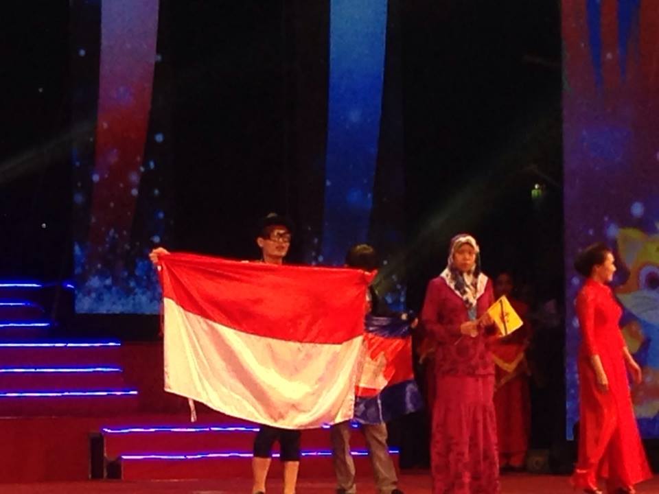 Para kompetitor Indonesia sebelum maju ke depan untuk menerima medali