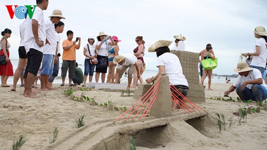 (VOVworld) - Pada 28 Juli lalu di lapangan pantai My Khe, kota Da Nang berlangsung lomba "Membuat patung dari pasir Vietnam -tahun 2013" dengan dihadiri oleh 300 pemuda kota dan para wisatawan. Lomba ini bertujuan menyosialisasikan keindahan garis pantai Vietnam dan kota Da Nang. Dengan cara menggunakan pasir dan air, para peserta lomba tersebut menjadi karya yang beraneka-ragam. Marilah anda sekalian menikmatinya
