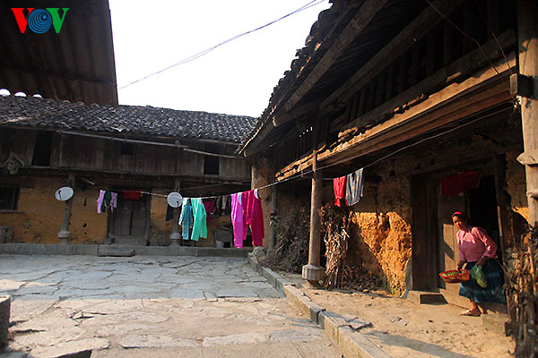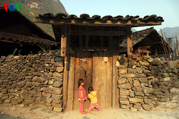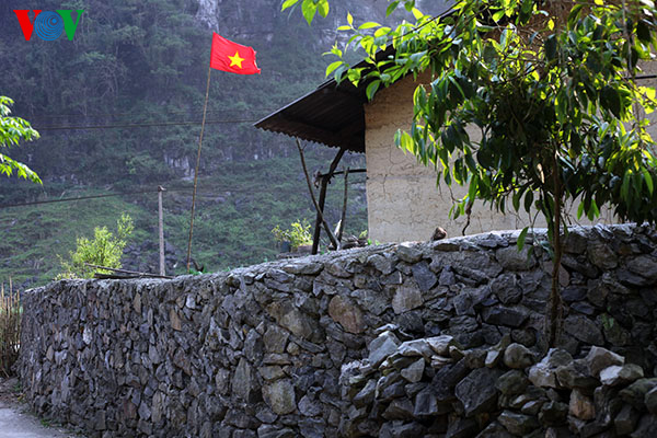 | Rumah trasional Pho Cao dengan pagar batu |