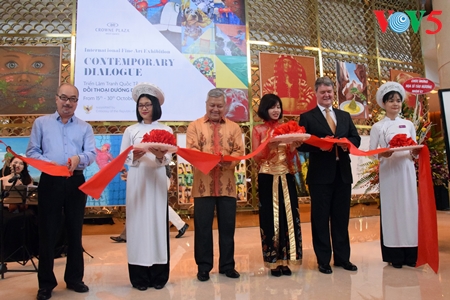 (VOVworld) – Pameran internasional dengan tema: “Dialog Kontemporer” dibuka pada Sabtu pagi (15/10), di kota Hanoi. Pameran ini memajang lebih dari 40 karya seni ciptaan duabelas pelukis asal Vietnam dan Indonesia. Pameran ini memacu penciptaan-penciptaan yang bersifat isi hati dan dialog-dialog terbuka antara para seniman dua negara dan dengan para pengunjung.