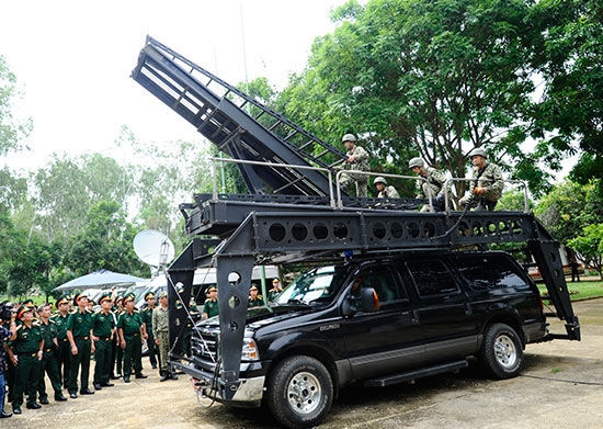 Letnan Jenderal Nguyen Trung Thu mengunjungi kamp latihan pasukan ini