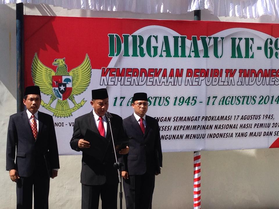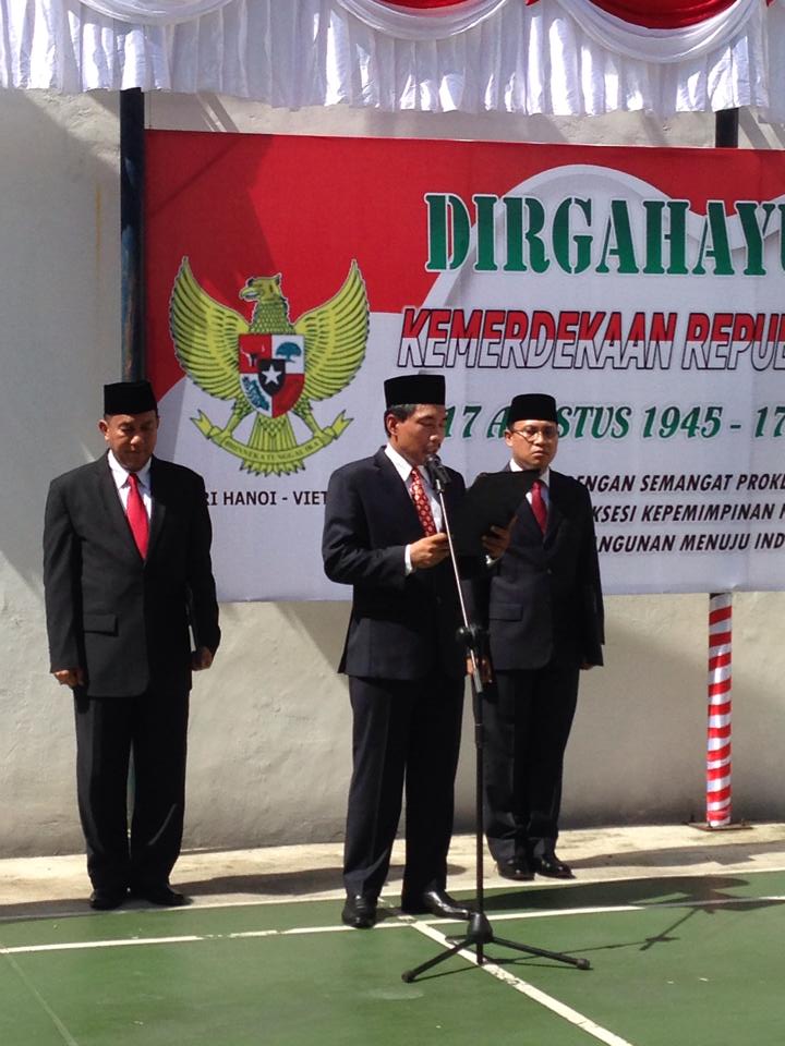 (VOVworld) - Pada Minggu (17 Agustus) di kota Hanoi, Kedutaan Besar Indonesia mengadakan upacara bendera untuk memperingati Ultah ke-69 Hari Kemerdekaan Republik Indonesia. Berikut ini ialah foto upacara ini