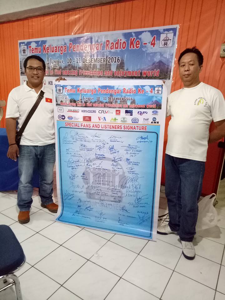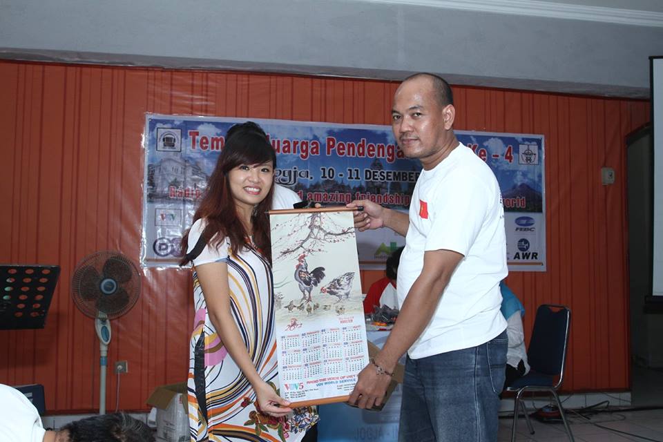 (VOVworld) - Pertemuan Keluarga Pendengar Radio ke - 4 berlangsung pada Sabtu (10/12/2016) di kota Yogyakarta dengan dihadiri oleh berbagai Radio RRI Jogja, Indonesia, Radio Suara Vietnam (VOV Internasional), Radio Hong Kong (Tiongkok) dan kira-kira 60 pendengar dari seluruh Indonesia, misal-nya dari Lombok, Kalimantan, Surabaya, Jakarta, Yogyakarta dan lain - lain...Dalam pertemuan ini, penyiar VOV5 telah melakukan kontak, temu pergaulan, berbagi informasi tentang perkembangan VOV dan memberikan suvenir dari VOV5 kepada para pendengar setia dan akrab dari VOV5.