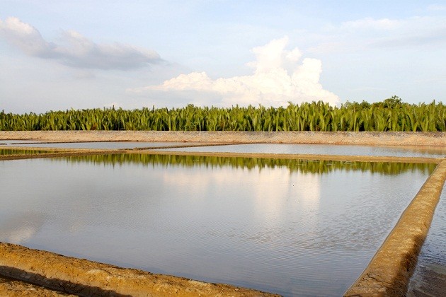 Para petani mengalirkan air laut ke ladang