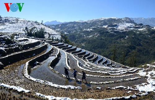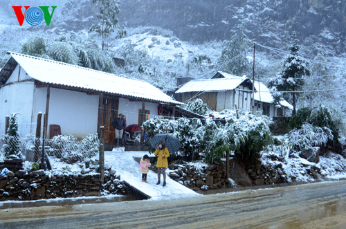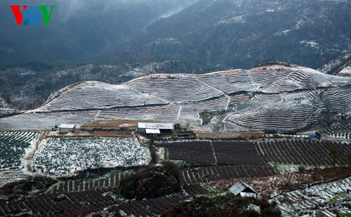 (VOVworld) - Walaupun sebagai satu negara tropika, tapi saban tahun di daerah yang paling ujung di Vietnam Utara setiap tahun tetap ada turun salju. Pada 19 Februari 2014, suhhu di daerah pegunungan Sapa turun hanya tinggal minus 2 selsius dan. Ini merupakan gelombang turun salju ke-3 sejak akhir tahun lalu sampai sekarang, Hujan salju ini telah meninggalkan pemandangan luar biasa indahnya yang menyerap perhatian banyak wisatawan.