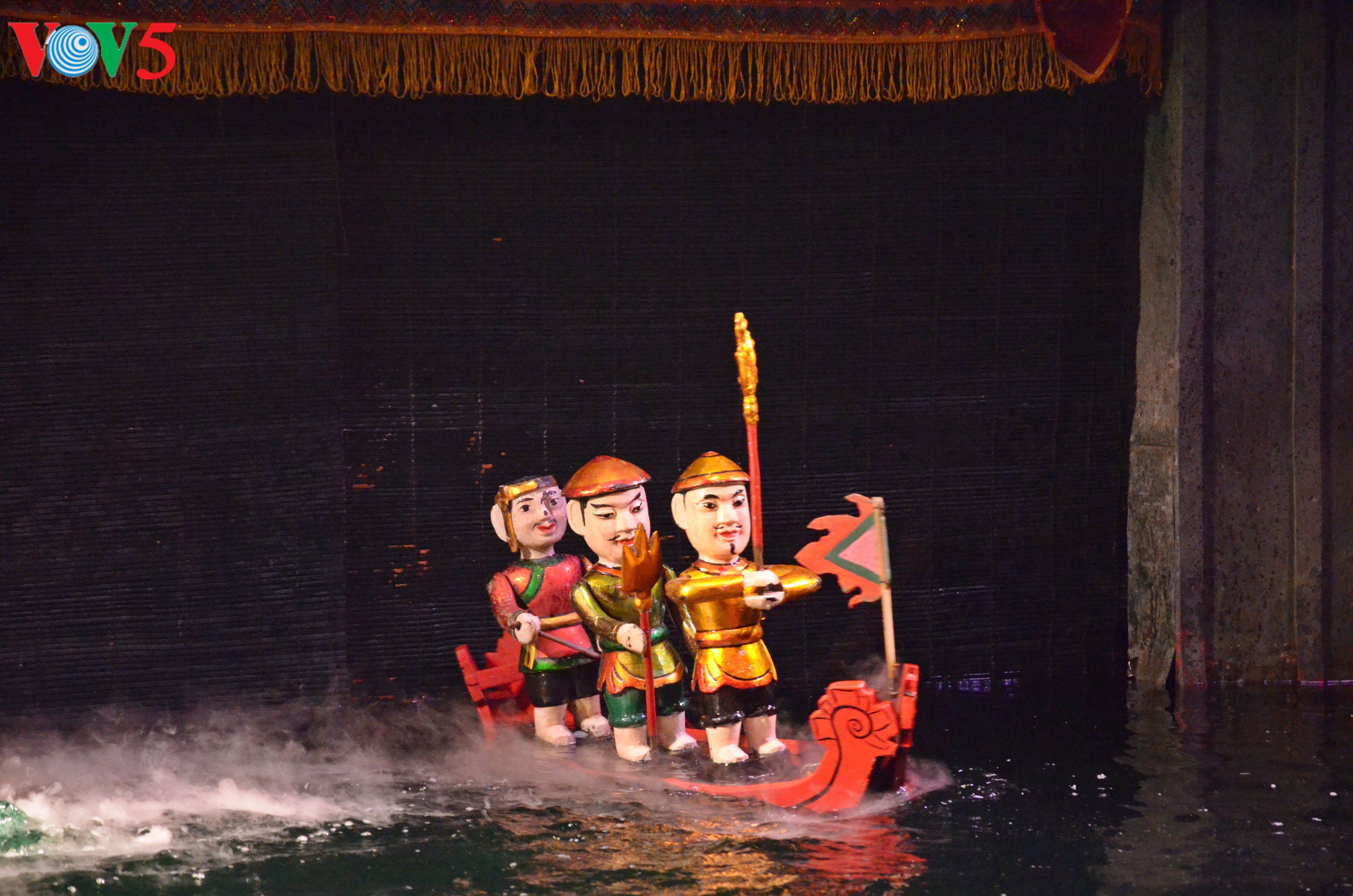(VOVworld) - Wayang golek air hanya ada di Vietnam saja dan ini merupakan kreativitas yang khas dari rakyat Vietnam. Seni pertunjukan wayang golek air mempunyai ciri-ciri khas yalah seniman-seniwati menggunakan permukaan air sebagai panggung, di belakang-nya ada layar, di sekitarnya dihias dengan panji-panji, kipas, gajah, payung kehormatan…Di panggung itu bermain-lah wayang-wayang golek buatan dari kayu yang dikendalikan oleh para artisan yang berdiri di belakang sistem galah dan tali dan lain-lain…Melalui kisah yang dimanifestasikan oleh para artisan, semua situasi kehidupan biasa, adat istiadat kaum tani Vietnam dimanifestasikan secara jelas di atas panggung air. Seni wayang golek air Vietnam dikombinasikan antara seni pahat, musik, cahaya dan kelihaian dari para seniman-seniwati. Marilah anda sekalian menikmati satu pertunjukan wayang golek air di teater Thang Long, Hanoi.