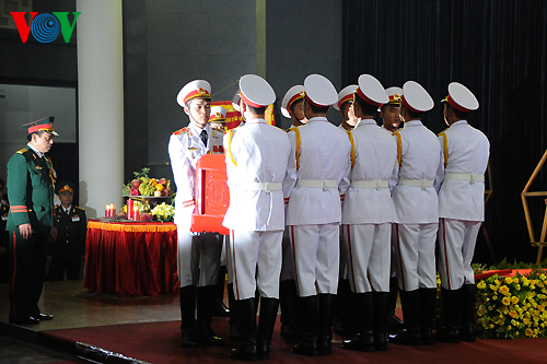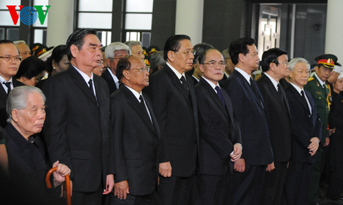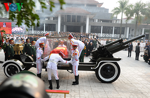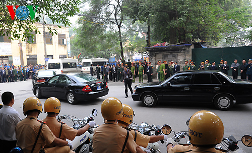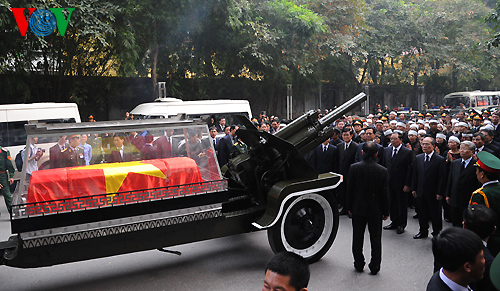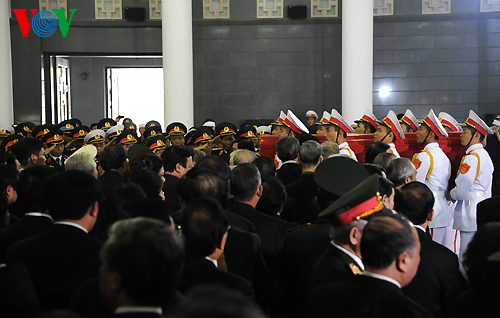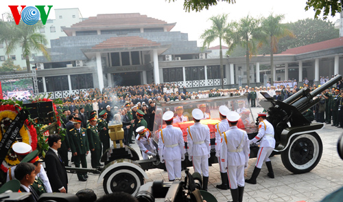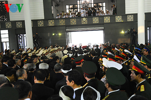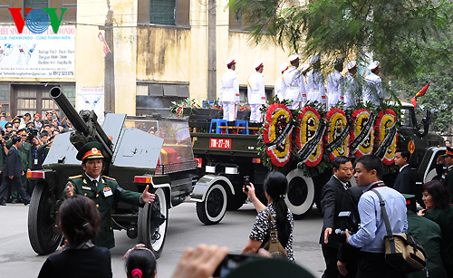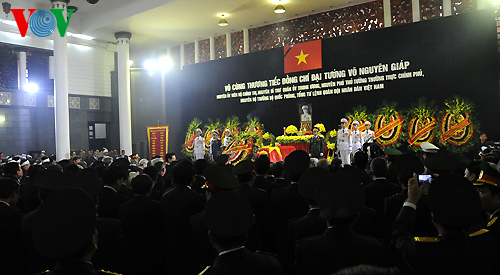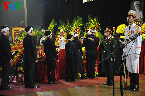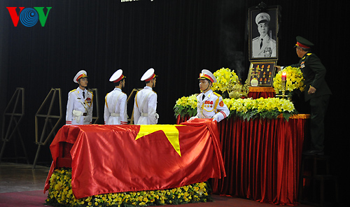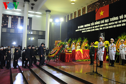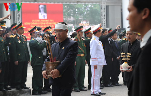 (VOVworld) - Selama upacara pemakaman kenegaraan, pada Minggu (13 Oktober), upacara belasungkawa kepada Almarhum Jenderal Vo Nguyen Giap, Mantan Anggota Polit Biro Komite Sentral Partai Komunis Vietnam, Mantan Sekretaris Komisi Militer Komite Sentral, Mantan Deputi Harian Perdana Menteri Pemerintah, Mantan Menteri Pertahanan, Panglima Tertinggi Tentara Rakyat Vietnam, mantan Anggota Majelis Nasional dari angkatan I-VII telah berlangsung di Rumah Duka Nasional di Jalan Tran Thanh Tong, Nomor 5, ibukota Hanoi.