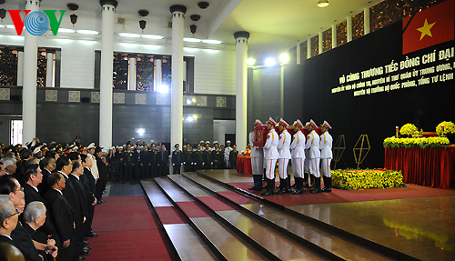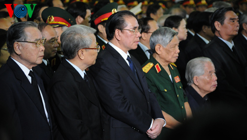 Yang menghadiri upacara belasungkawa ini, ada para pemimpin, mantan pejabat senior Partai Komunis, Negara, tentara; delegas-delegasi tingkat tinggi negara asing, pemimpin Kementerian, Instansi, berbagai tingkat serta seluruh keluarga Almarhum.