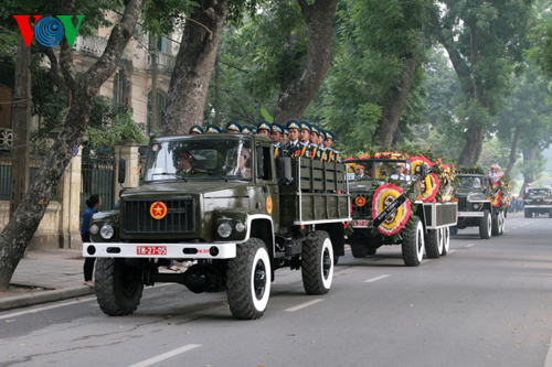 | Đoàn xe mang linh cữu Đại tướng di chuyển đến sân bay Nội Bài |