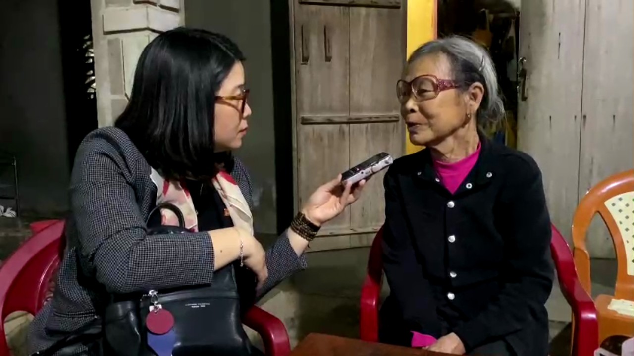 Wartawan Thu Hoa (kiri) berbicang dengan sanak keluarga martir Cao Van Tuat (Foto; VOV) |