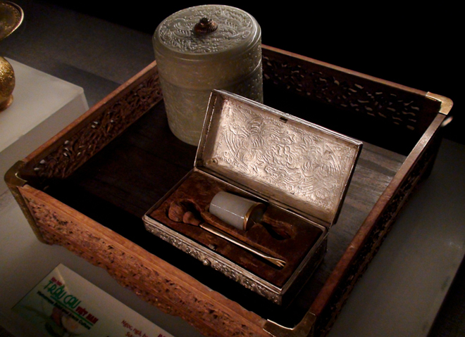 Di hampir semua ruang pameran ini dipresentasikan peringkat-peringkat tepak sirih dari kalangan bangsawan Vietnam dari abad ke-18 sampai ke-19. Semua benda halus yang dibuat dari bahan-bahan seperti emas, perak, kayu langka atau porselen yang bernilai, dengan ukiran-ukiran yang halus menyerap perhatian pengunjung. Semua alat makan sirih ini ada yang dari zaman dinasti Ly atau Le Nguyen, dll, yang dibuat dengan jenis email khusus dan bermacam-macam bentuk menunjukkan kekaya-rayaan dan keragaman budaya makan sirih pinang Vietnam dari zaman ke zaman.