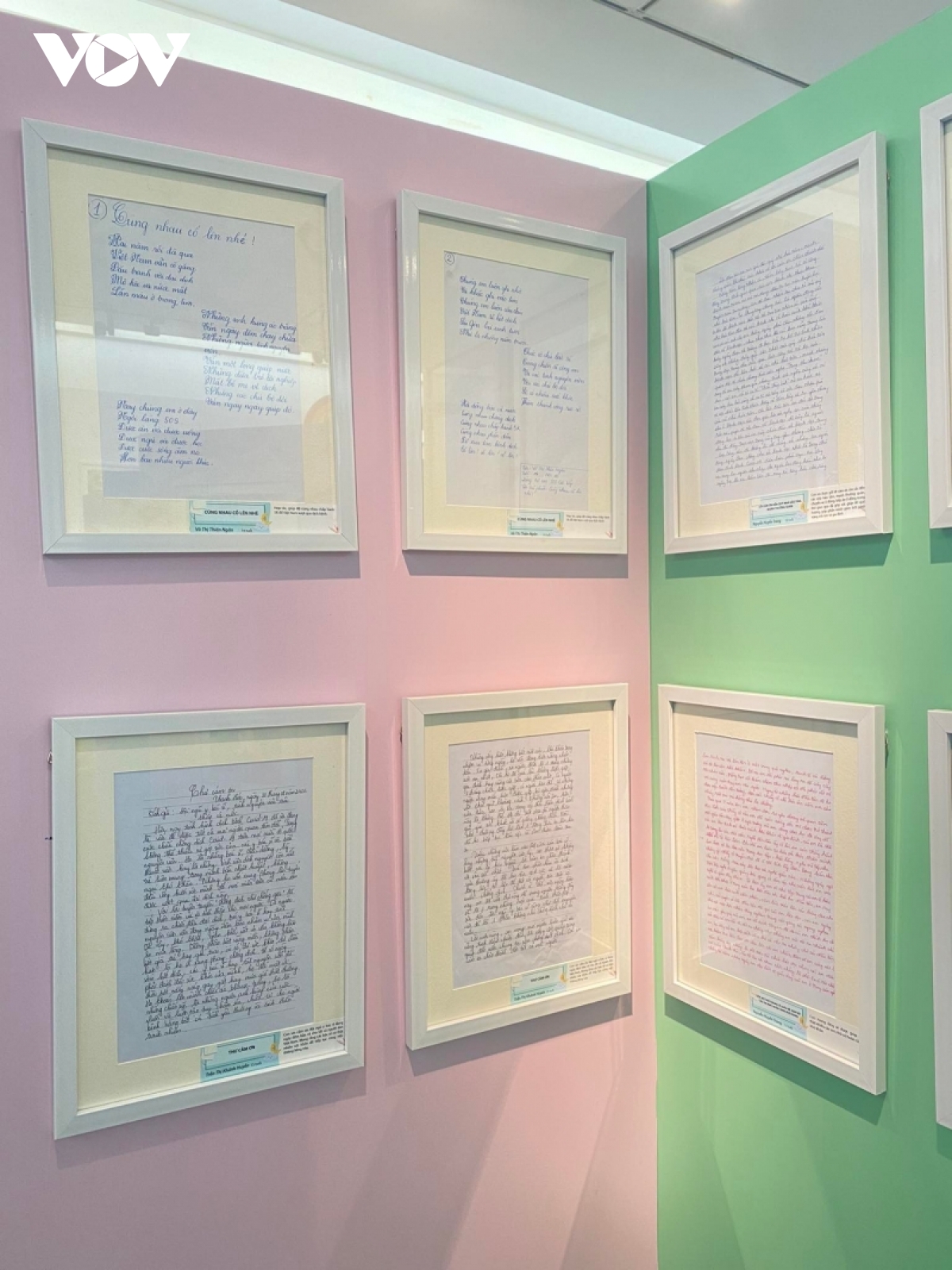 Foto para anak-anak yang mempunyai karya-karya yang dipajang di pameran (Foto: VOV) |