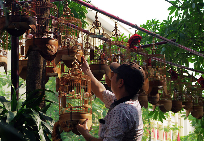 (VOVworld) – Main catur cina, gerak jalan, ikut kelab sajak, menanam bunga, hobi memelihara ikan hias, dll merupakan salah satu diantara hiburan-hiburan yang elegan dari orang Hanoi. Dan sungguh suatu kekurangan jika kita tak menyebutkan hobi memelihara burung hias, satu hobi yang sangat sesuai dengan zona-zona perkotaan yang berkembang, tapi kurang ada ruang-ruang yang luas seperti kota Hanoi. Suara kicauan burung bulbul, burung kacamata, burung tekukur biasa, burung kutilang jambul tak hanya membuat orang terpesona saja, juga merasa santai.
