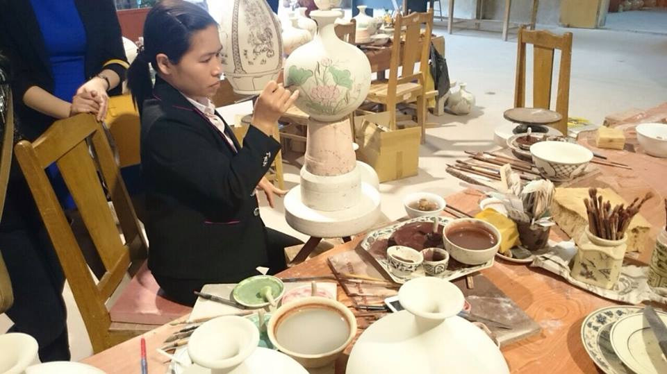 “Menurut saya, produk keramik di sini sangat unik karena bahannya tahan lama, motifnya indah dan mengesankan. Jika datang di bengkelnya, kita juga bisa langsung membubuhkan tanda-tangan pada barang yang kita beli. Mereka katakan bahwa pasangan guci yin-yang ini melambangkan kehangatan pasangan suami-istri, maka saya sangat menyukainya dan akan meletakkannya di kamar kami”. Kata saudari Thuong.