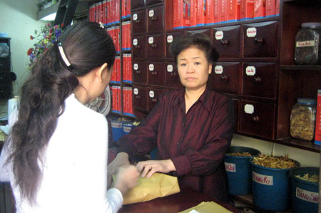 Ibu Thanh Nga, seorang pemilik toko obat yang telah lama di jalan Lan Ong memberitahukan: “Keluarga saya menjalankan usaha ini sudah 30 tahun. Ini merupakan kejuruan yang diwariskan oleh nenek dan kakek saya. Barang-barang jualan di sini terutama obat-obat timur tradisional. Ini adalah jalan utama bidang kesehatan maka ada cukup lengkap semua jenis obat yang bernilai… Yang paling disukai oleh pelanggan sekarang ini adalah “tam that”, sejenis obat tradisional yang bermanfaat bagi darah dan membunuh tumor…” Tidak hanya menjual obat-obat timur tradisional, di jalan terkenal ini juga ada tabib-tabib yang khusus meramu resep obat-obat timur tradisional dan mengobati pasien.