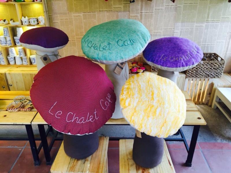 Semua produk di toko Le Chalet Café dari barang asesori seperti tas, dompet, anting, kalung, dll sampai barang hias dalam rumah seperti taplak meja, vas bunga lak, pigura foto, gelas porselen, dll semuanya dibuat oleh tangan yang prigel dari para tukang kerajinan tangan yang sedang bekerjasama dengan toko ini seperti yang dilakukan Ta May. Semua barang ini berharga dari puluhan sampai ratusan ribu dong Vietnam. Saudari Kim Ngan, Pemilik toko Le Chalet Café berbagi ide tokonya: “Pola toko kami ialah toko suvernir yang punya tanggung jawab sosial. Le Chalet Café memainkan peranan sebagai jembatan penghubung yang membantu proses produksi dan penjualan, menciptakan lapangan kerja kepada para artistan yang mengalami kesulitan. Bagi para artisan profesional, kami hanya tinggal memberitahukan keinginan saja dan mereka bisa menghasilkan produk yang sesuai. Tapi bagi para artisan yang tidak mahir seperti Ta May, kami siap memberikan bantuan teknis. Kami sendiri telah mengundang Ta May ke kota Hanoi selama 2 hari untuk bertemu dengan para desainer untuk belajar pengalaman. Kini Ta May sudah bisa menghasilkan produk-produk yang luar biasa. Ini juga merupakan satu cara melakukan kegiatan amal yang berkesinambungan dari toko kami”.