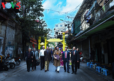 Kunjungan wisata musim semi di sekitar sektor kota kuno Hanoi dari para Dubes