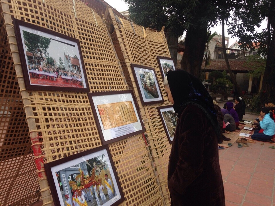 Di satu sudut pameran dekat pintu pagoda, tempat yang memamerkan 2 di antara 10 foto hitam-putih di pameran ini, bapak Dinh Cong Minh, Kepala Asosiasi Petani, anggota panitia penyelenggara pameran sedang dengan hangat menjelaskan secara terinci foto-foto kepada para pengunjung. Menunjuk pada satu foto hitam-putih yang dipotret pada tahun 1992, dia memberitahukan: “Foto ini ditemukan oleh keluarga bapak Trinh The Sung dari sebuah keluarga di sektor kota kuno Hanoi pada tahun 1998. Foto ini memotret para anggota dewan rakyat desa Cu Da pada zaman yang dikelola oleh Kolonialis Perancis. Yang berdiri di tengah-tengah foto ialah kakek Vu Tu Duong yang terkenal sebagai orang yang cerdas, orang yang mempunyai jasa besar dalam membangun pusaka-pusaka budaya desa, khususnya dia adalah orang yang berjasa membawa listrik untuk menyinari desa”.