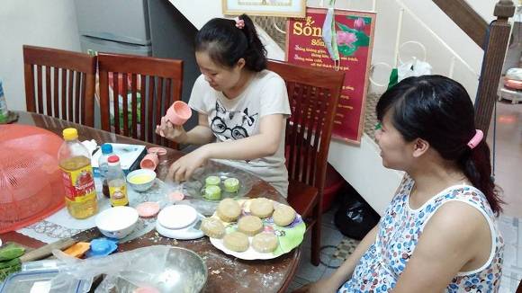 Pada Minggu pagi yang udaranya indah, saudari Thanh Huyen di zona-zona perkotaan Kim Van dan Kim Lu, kabupaten Hoang Mai, kota Hanoi tidak ikut kursus senam aerobik seperti biasa. Pada pagi hari ini, dia menyediakan waktu akhir pekan membuat kue bulan bulan bagi putranya dengan tangannya sendiri. Kue bulan purnama panggang berisi kacang merah merupakan jenis kue yang sangat disukai putranya yang baru berusia 9 tahun.