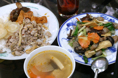 (VOVworld) – Menurut ajaran agama Buddha, masakan vegetarian bertujuan memupuk kebaikan, menumbuhkan benih kebaikan dan mengembangkan kasih sayang yang luas bagi semua orang dan makhluk hidup. Oleh karena itu, masakan vegetarian merupakan cara untuk memanifestasikan penghormatan terhadap kehidupan, menghapuskan keserakahan, kemarahan dan kebodohan. Bagi banyak warga kota Hue, makan vegetarian juga untuk menjaga kesehatan. Warung masakan vegetarian merupakan tempat untuk mengkonektivitaskan para umat buddhis, mereka datang ke sini tidak hanya untuk mencicipi masakan-masakan saja, tapi juga untuk mencari kesamaan hati, menuju ke hal-hal yang baik.