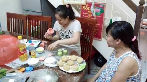 Para ibu rumah tangga dengan gerakan membuat kue bulan purnama sendiri