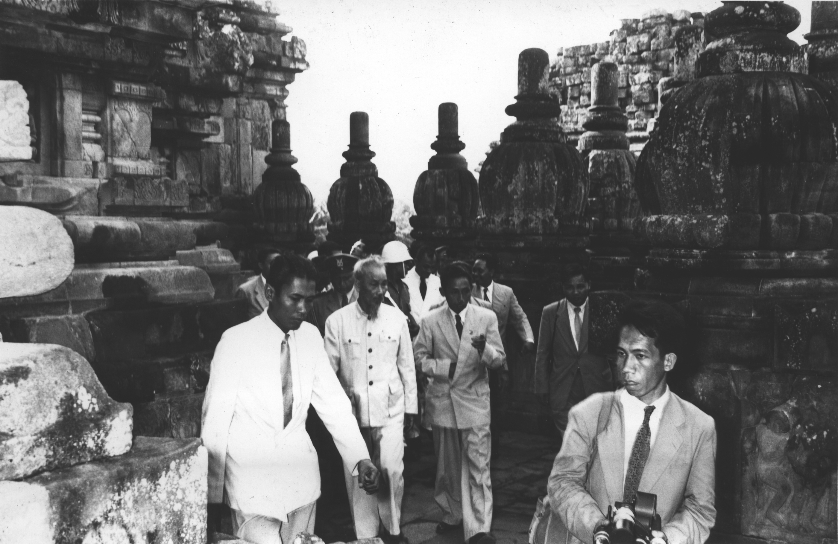 Presiden Ho Chi Minh beserta rombongan sedang melihat dan mengelilingi Candi Prambanan. (Foto : Arsip Nasional Indonesia)