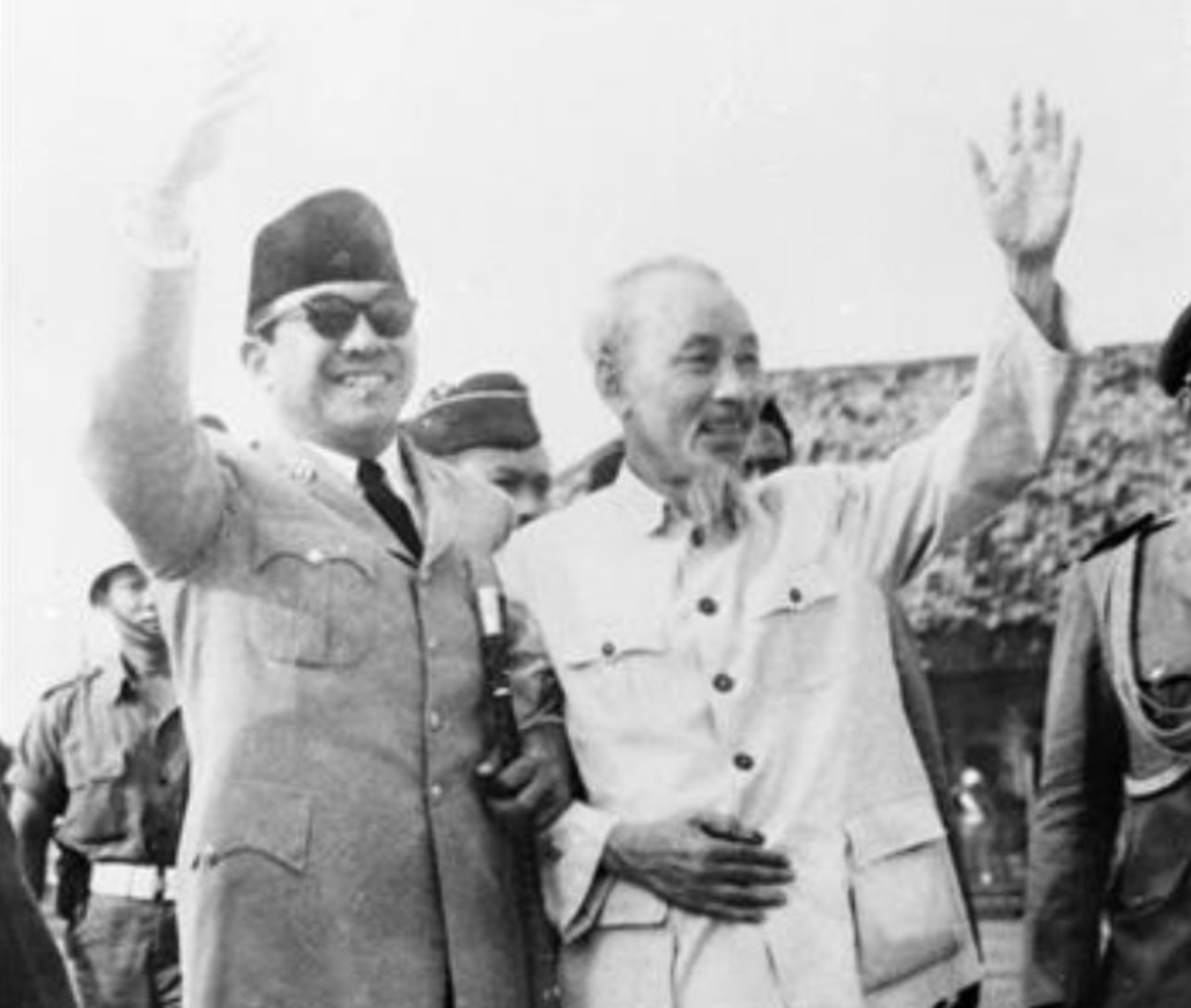Presiden Soekarno mengadakan resepsi menyambut kedatangan Presiden Ho Chi Minh pada tahun 1959 (Foto : Pinteres)
