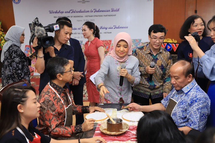 Program "Kumpulkan pengalaman dan Perkenalkan Batik Tradisional Indonesia" diselenggarakan oleh Asosiasi Persahabatan Vietnam-Indonesia bekerja sama dengan Kedutaan Besar Republik Indonesia (KBRI) di kota Hanoi pada 31 Mei untuk memperkuat pengertian antara rakyat kedua negeri. Ini juga merupakan kegiatan dalam rangkaian kegiatan memperingati HUT ke-10 Penggalangan hubungan strategis antara Vietnam dan Indonesia (tahun 2013-2023).