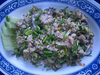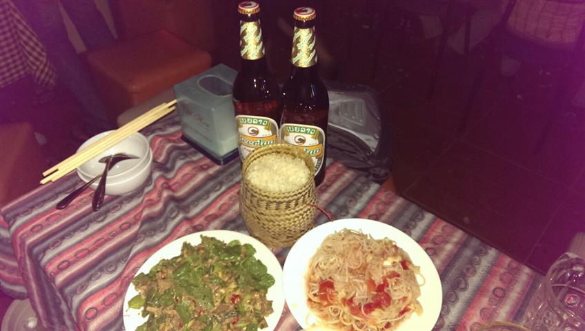Di warung makan ini, ada cukup masakan-masakah Laos yang kenamaan seperti Lap, urapan pepaya, ikan yang direndam dengan daun jeruk nipis, soup asam ikan dll... Saudara Kit yang berasal dari Udomxay, mahasiswa tahun ke-2 Sekolah Politik dan Administrasi daerah I mengatakan: “ Saban pekan, saya 2 sampai 3 kali datang ke sini, masakan yang paling saya sukai ialah Lap. Hari ini, ada mahasiswa yang baru masuk kuliah, sehingga saya mengundang mereka untuk mengadakan jamuan guna menyambut mereka”.