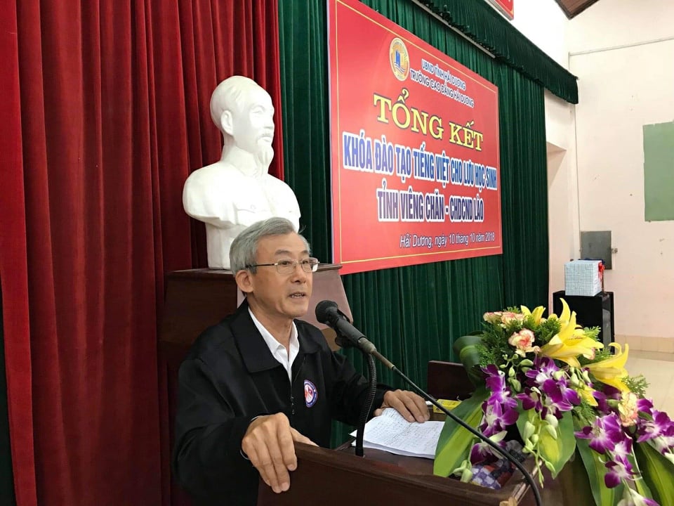 Bapak Hoang Dao berbicara pada acara penutupan kursus pendidikan bahasa Vietnam untuk siswa Provinsi Vientine, Laos |