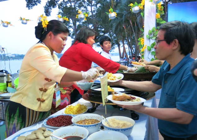 s Laos menjual makanan tradisional seperti: Lap, nasi ktan, urapan pepaya dan lain-lain. Duta Besar Luar Biasa dan Berkuasa Penuh Republik Demokrasi Rakyat Laos di Vietnam, Thongsavanh Phomvihane mengatakan: “Bagi Kedubes Laos, ini merupakan aktivitas yang bermakna. Yang pertama ialah memupuk persahabatan solidaritas, selain itu juga merupakan festival keamaal untuk membantu orang-orang yang menjumpai kesukaran, anak yatim piatu, anak difabel. Semua uang yang diperoleh akan diberikan kepada program amal ini”.