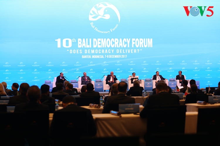 Begitulah pernyataan Menteri Luar Negeri (Menlu) Indonesia, Retno Marsudi pada acara pembukaan Forum BDF-10. Juga menurut Menlu Retno Marsudi, forum kali ini mencatat partisipasi jumlah negara yang meningkat secara melompat yaitu lebih dari 100 utusan yang meliputi Presiden, Menteri dan pejabat awal 96 negara di dunia beserta 7 organisasi internasional seperti ASEAN, Uni Eropa, Perserikatan Bangsa-Bangsa, Lembaga Palang Merah Internasional, Institut Bantuan Demokrasi dan Pemilihan Internasional dan lain-lain.