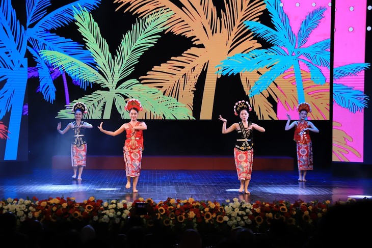 Sementara itu, para seniman Teater Musik dan Tari Vietnam menampilkan kekayaan identitas Vietnam melalui pertunjukan lagu dan tari "Oh Vietnam, cakrawala terbuka lebar" dan ansambel musik instrumen batu dan instrumen t'rung dengan seruling bambu. Tarian “Yapong dan Manggaro” yang ditampilkan para mahasiswa Universitas Teater dan Sinema Hanoi yang mendapatkan Beasiswa Seni-Budaya Indonesia (ICS) sebagai bukti kerja sama budaya kedua belah pihak. Dengan ilmu dan pengalaman yang diperoleh dalam waktu berkuliah di Indonesia, para seniman muda telah memperkenalkan negeri Indonesia yang beragam secara budaya kepada khalayak Vietnam.