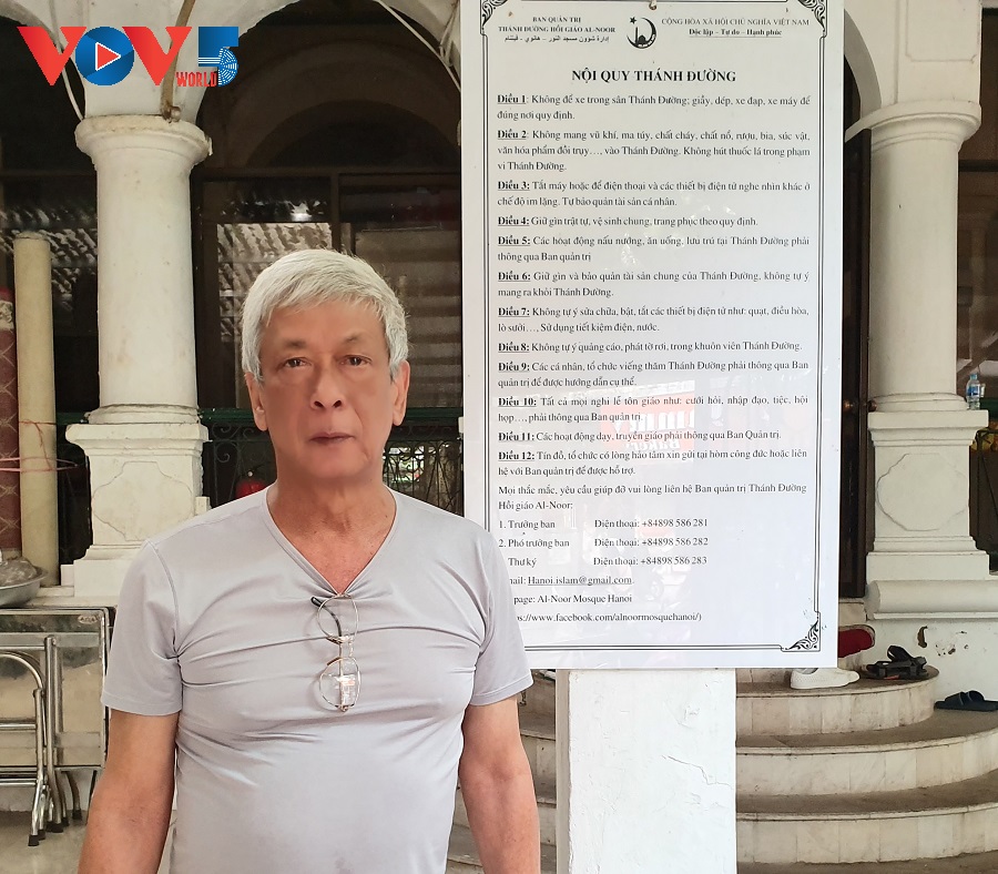 Doan Hong Cuong, Wakil Kepala Badan Manajemen Masjid Al-Noor, orang yang lahir dalam satu keluarga Muslim keturunan Pakistan di Kota Hanoi dan meneruskan usaha ayahnya untuk mengurus masjid ini sejak tahun 1945 hingga kini, memberitahukan: