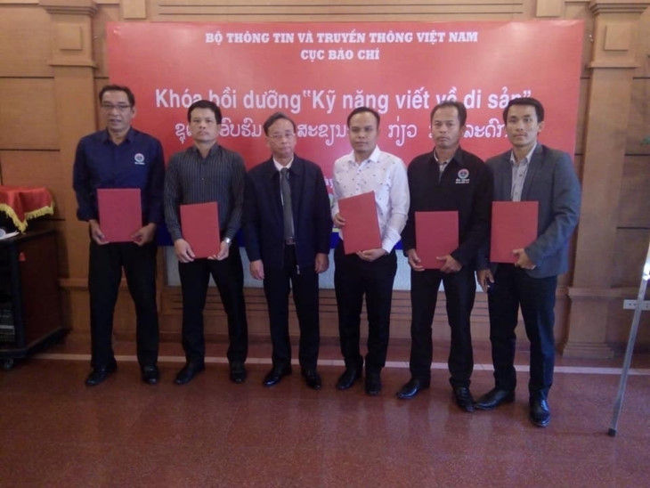 Pada akhir tahun 2018 lalu, Direktorat Pers dari Kementerian Informasi dan Komunikasi Vietnam telah mengadakan program pelathan kemampuan para wartawan Laos untuk menulis artikel tentang pusaka. Ketika berbicara di depan pembukaan program ini, Nguyen Thai Phien, Wakil Kepala Direktorat tersebut menilai bahwa Laos adalah satu negeri yang mempunyai jumlah pusaka budaya alam dan budaya non-bendawi yang unik, dengan satu kebudayaan yang tipikal dan tidak semua negeri memilikinya. Untuk bisa mengkonservasikan dan menngembangkan pusaka-pusaka budaya alam, pusaka non-bendawi dan kebudayaan-kebudayaan Laos yang unik merupakan satu pekerjaan yang tidak sederhana. Nguyen Thai Phien, Wakil Kepala Direktorat Pers dari Kementerian Informasi dan Komunikasi Vietnam memberitahukan: "Menurut saya, dalam proses melakukan konservasi, peranan pemberian informasi oleh media massa amat penting. Media massa harus melakukan propaganda agar seluruh rakyat dan sekuruh masyarakat tidak hanya mengerti tentang nilai yang tak ternilaikan harganya dari semua pusaka saja, melainkan juga membantu warga dan seluruh masyarakat memahami dan menjaga, meningkatkan kesedaran dalam membela dengan baik semua pusaka".