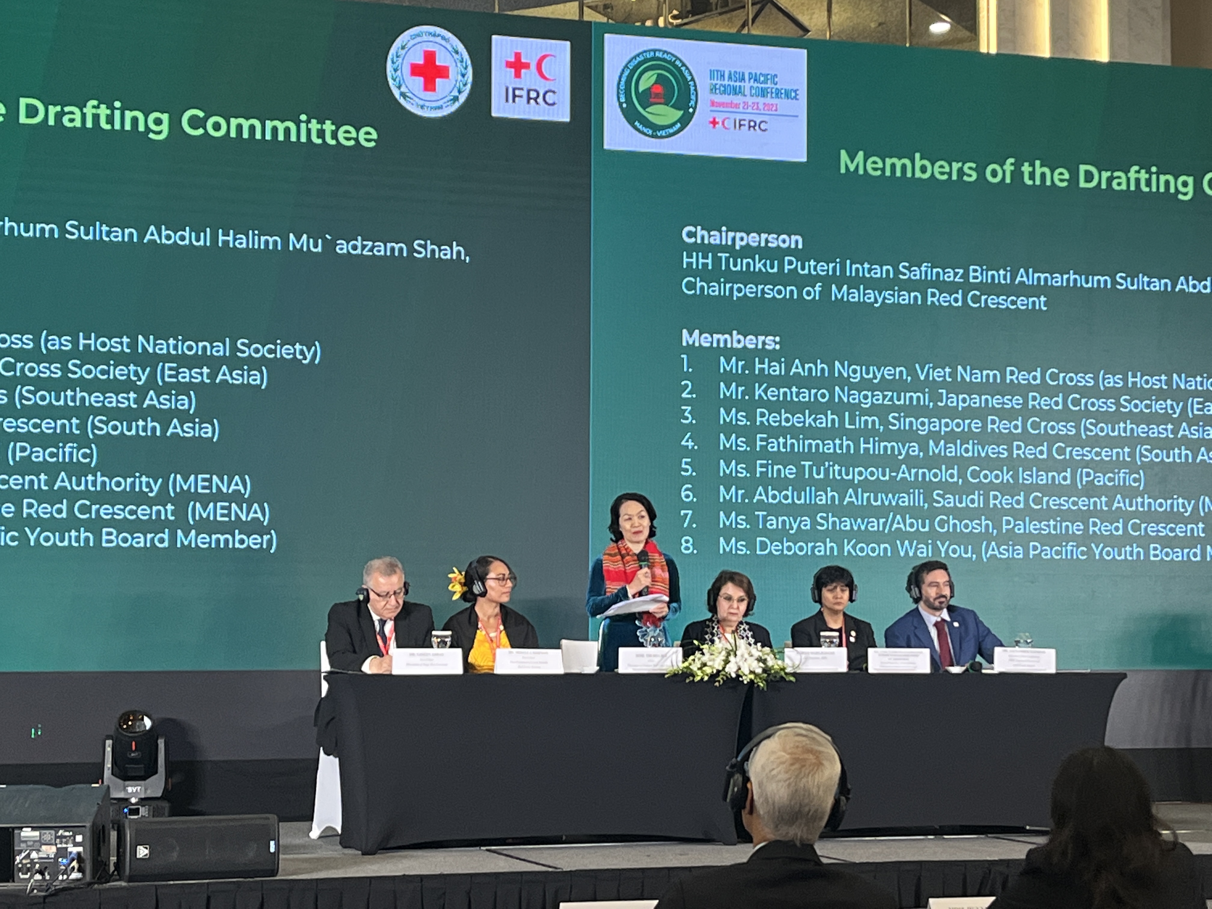 Sejak konferensi terakhir di Manila, kawasan Asia Pasifik telah menghadapi banyak musibah, antara lain bencana alam, musibah ekstrem, gempa bumi, letusan gunung berapi, serta konflik yang rumit dan berkepanjangan, dan tentunya pandemi Covid-19. Terlepas dari tantangan yang ada, Lembaga-Lembaga Palang Merah tetap teguh dan bertanggung jawab atas komitmennya untuk mempertahankan hal-hal mendasar dan mencapai upaya terakhir. Saya sangat yakin bahwa konferensi regional di Hanoi kali ini akan memperkuat visi dan tekad kita bersama, membangun kerja sama di atas semangat yang kita bina di Manila.”