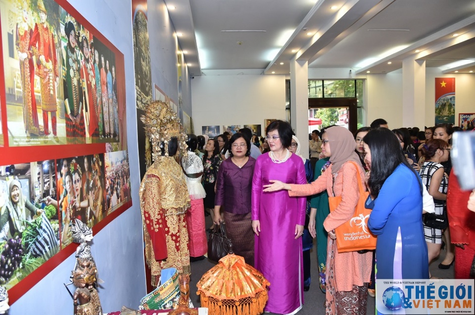Ruang pameran terletak di lantai satu dari Museum Wanita Vietnam yang luasnya kira-kira 80 meter persegi telah menjadi tempat pameran tentang ruang budaya negara-negaraASEAN. Ketika memasuki ruang pameran itu, yang menyerap perhatian dari para pengunjung yalah tempat lukis kain Batik. Kotak- kota berwarna hijau, merah, kuning, ungu dan lain-lain .. diatur di atas satu meja yang luas. Disamping-nya, Nguyen Hoang Anh, mahasiswa tahun pertama Sekolah Tinggi Industri sedang memilih warna. Di dekatnya ada beberapa pemuda lain yang juga sedang mencoba dengan pengajaran seni melukis yang sepenuhnya baru ini. Mahasiswa Nguyen Hoang Anh memberitahukan: " Ini adalah untuk pertama kalinya saya mencoba melukis gambar di atas kain Batik. Menurut saya, yang paling sulit yalah cara mencampurwarna di atas kain secara langsung. Bagaimana supaya tidak membelobori tempat yang lain".
