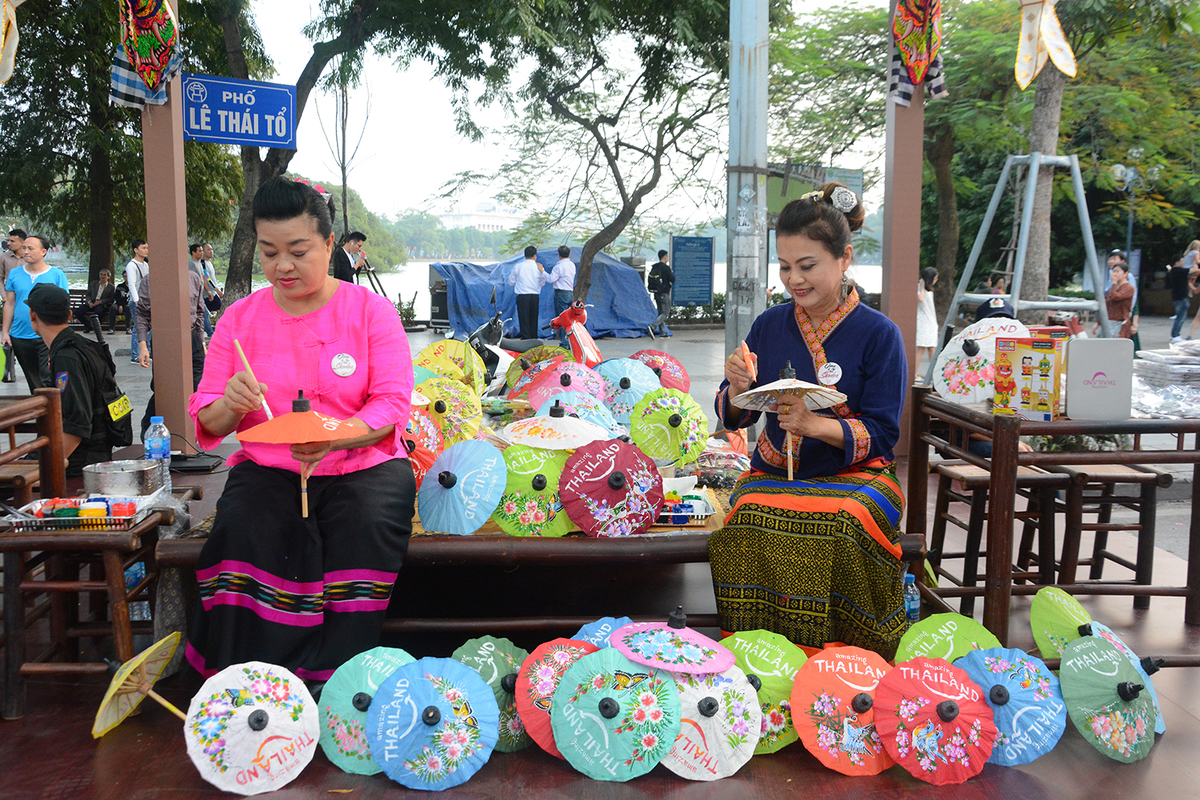 Untuk pertama kali tiba di Ha Noi untuk ikut menyosialisasikan kebudayaan dan pariwisata Thailand, saudari Pattana Chonthavivirut dalam busana tradisional yang berwarna-warni dari perempuan Thailand Timur Laut, rambutnya disanggul tinggi, merasa heran atas perhatian para pengunjung di gerai yang memperkenalkan payung tradisional Desa Bo Sang, yang biasanya disebut payung Bo Sang. Hampir sepuluh pengunjung berkerumun, berdiri di sekitar untuk memandangi saudari Pattana Chonthavivirus dan seorang temannya yang melukis motif-motif dekorasi pada payung kertas kecil yang cantik itu.