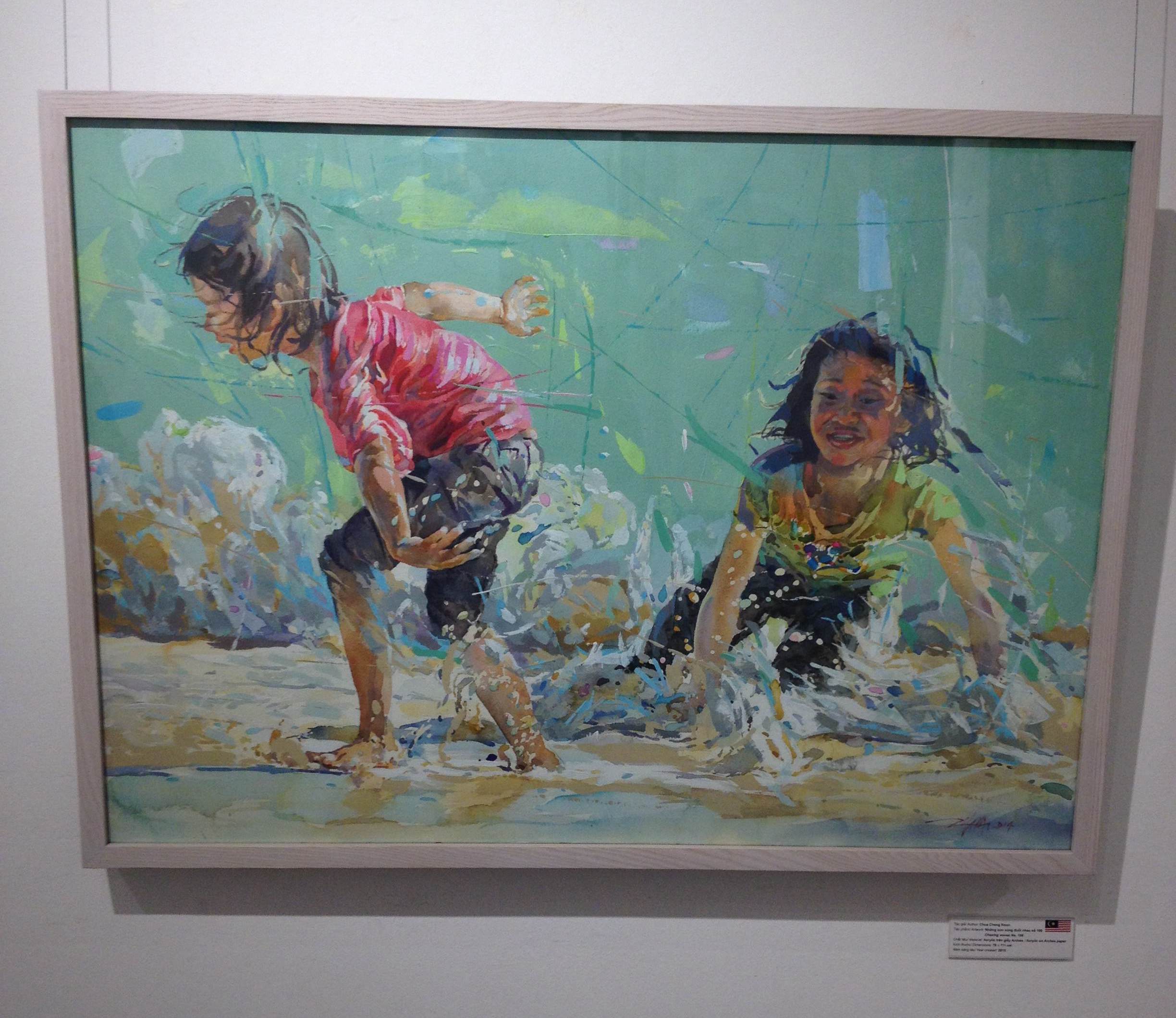 “Kali ini, saya membawa ke pameran ini empat karya yang saya lukis dengan cat acrylic di atas kanvas. Saya menginginkan agar semua orang punya tambahan cara memandang tentang kehidupan di Malaysia. Anak-anak bergurau disamping sungai dengan wajah-wajah yang menggembirakan, aktivitas-aktivitas di tengah-tengah arus air yang sejuk di bawah terik sinar mata hari”.