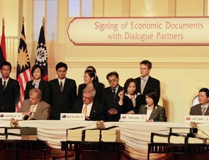 Informasi tentang dimulainya satu permufakatan perdagangan bebas bersama kawasan dengan resmi diumumkan Sekretaris Jenderal ASEAN, Surin Pitsuwan di Forum ke- 13 Badan Usaha Asia- Eropa yang diadakan di Vientiane (ibu kota Laos) pada akhir pekan lalu. Menurut Surin Pitsuwan, hubungan Kemitraan Ekonomi komprehensif regional menjadi satu bagian struktur dalam hubungan kemitraan ekonomi ASEAN. Sampai sekarang ini, ASEAN telah menandatangani satu permufakatan perdagangan bebas bersama dengan enam negara mitra dialog (diantaranya ada satu permufakatan perdagangan bebas bersama dengan Australia dan Selandia Baru). Dimulainya satu permufakatan FTA bersama adalah hal yang wajar untuk periode sekarang ini karena ASEAN sedang memerlukan bantuan dari semua mitra dialog- nya pada latar belakang sedang berupaya menjadi satu komunitas bersama pada 2015. Satu perjanjian perdagangan bebas bersama akan menjadi satu “pacuan” yang lebih kuat untuk mendorong satu zona ekonomi yang berkembang secara dinamis pada waktu mendatang. Sekretaris Jenderal ASEAN Surin Pitsuawan menunjukkan:“ASEAN adalah perekonomian yang besarnya nomor 3 di Asia Timur. ASEAN akan memiliki komunitasnya pada 2015 dengan tiga pilar utama dan ASEAN mempunyai ratusan juta konsumen. ASEAN menyedari tanggung jawab itu dan berharap supaya ASEAN bisa berkonektivitas lebih banyak dengan proses pertukaran perdagangan global”.